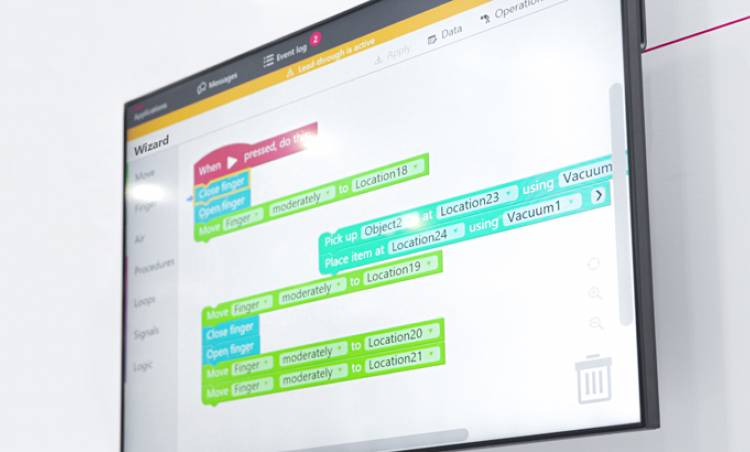 Combined with its lead through programming feature, Wizard easy programming makes using a single-arm YuMi robot smoother than ever. The software features essential robot functions such as “move”, “pick” and “vacuum”, covering a wide range of tasks that are usually executed by the robot. There are also functions for error handling, allowing novice programmers to take care of errors such as collisions. By simplifying the typically complex programming associated with handling errors, Wizard easy programming can help any robot user develop highly effective robot programs.