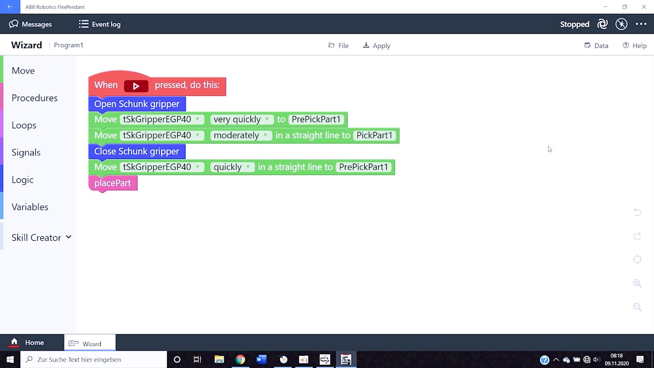 Kolay Programlama Sihirbazıyla, bir robot dakikalar içinde çalışmaya başlayabilir. Programlama süreci, ABB FlexPendant üzerinde gerekli bloğu basitçe sürükleyip bırakarak, kullanıcının sonuçları hemen görebileceği ve gerekirse robotun eylemlerini ayarlayabileceği bir uygulama şekline indirgenmiştir. Makine besleme veya montaj gibi uygulamalar için robot programlama dili bilgisine gerek kalmadan, sadece bu blokları birbirine bağlayarak eksiksiz programlar oluşturulabilir.