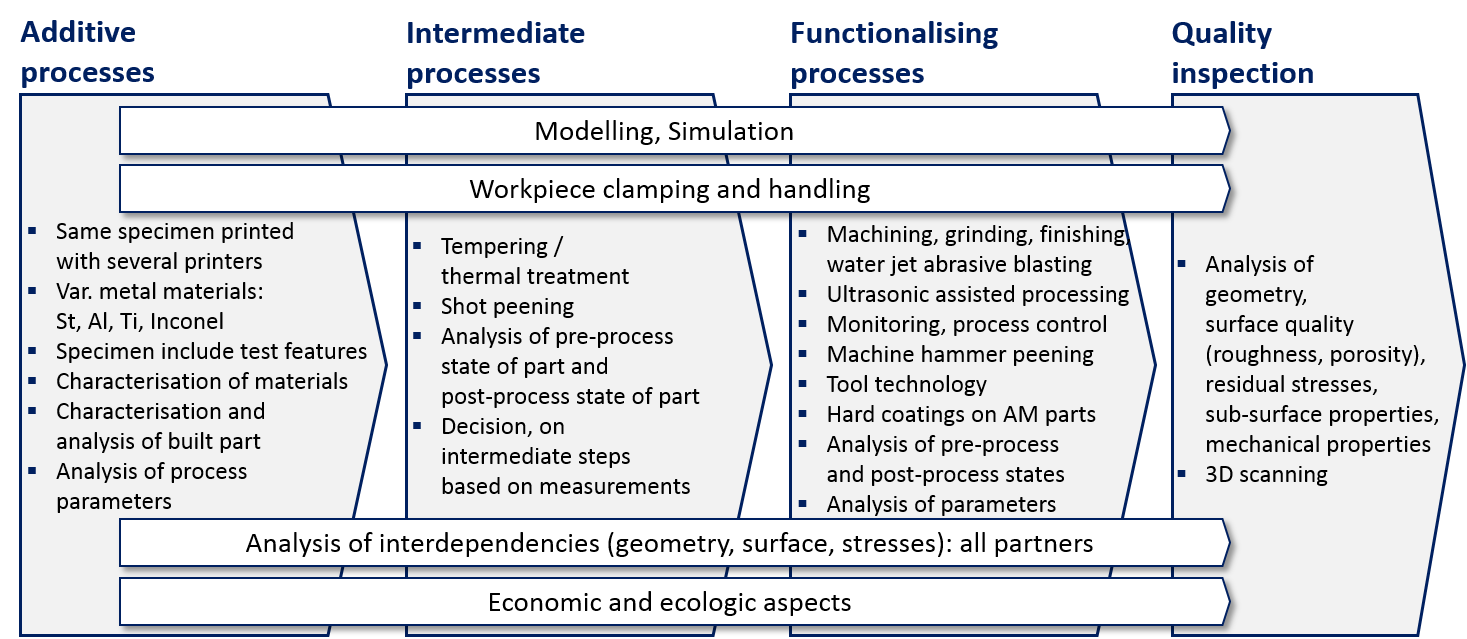Additive-subtractive manufacturing processes – ASM for short. It sounds a bit like school arithmetic. However, ASM is actually "the comprehensive combination of additive component generation with subtractive (i.e. material-removing) post-processing," says Möhring, who initiated the EU Ad-Proc-Add project and has joined forces with leading academics in production research within the WGP (German Academic Association for Production Technology). The whole topic is exciting because of the wide range of possible materials, of additive manufacturing processes and of different influences on components.