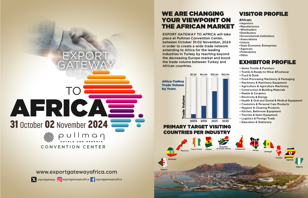 Siz de bu artışa dahil olmak istiyorsanız 31 Ekim-02 Kasım 2024 tarihleri arasında İstanbul Pullman Otel ve Convention Center'da gerçekleştireceğimiz Gateway to Africa Fuar ve Zirvesine katılabilirsiniz.