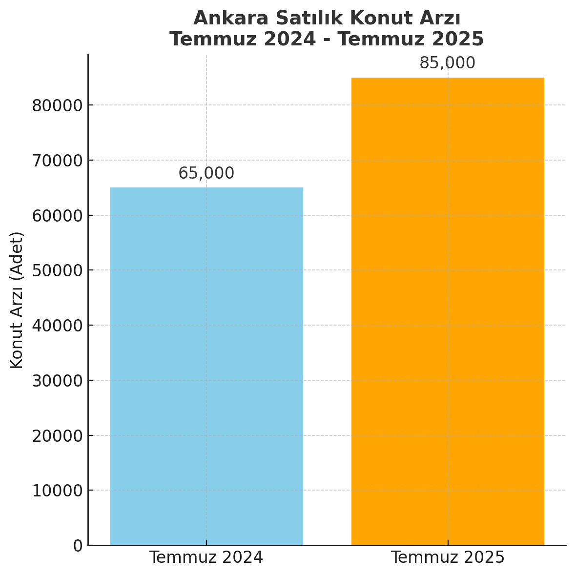 2025 yılının satıcılı bir yıl olarak sürüyor. Ankara’da satılık konut arzında ciddi bir artış görülüyor. Geçtiğimiz yılın aynı ayında Ankara’da 65 bin civarında satılık konut varken, 2025 Temmuz ayı itibariyle bu sayı 85 bin seviyelerine yükseldi