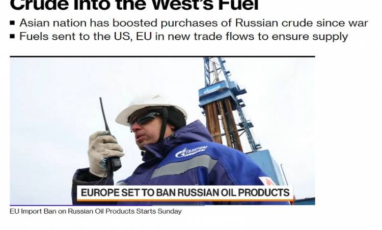 Bloomberg'in “Petrolün Yeni Haritası: Hindistan, Rus Ham Petrolünü Batı'nın Yakıtına Nasıl Dönüştürüyor" başlıklı son raporunda aktardığı bir uzmana göre, "Hindistan'ın daha dik bir indirimle daha fazla Rus ham petrolü satın alma isteği, Batılı ülkelerin ekonomik dayatma planında bir hata değil, bir özellik Putin'i kendilerine dayatmadan acı çekmek. Bir diğeri, "ABD hazine yetkililerinin iki ana hedefi var: piyasayı iyi durumda tutmak ve Rusya'yı petrol gelirinden mahrum etmek.”