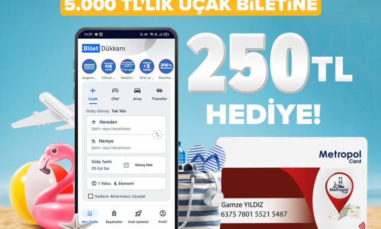 Turizm sektöründeki 30 yıllık tecrübesi ve teknolojiye yaptığı yatırımlarıyla dikkat çeken Bilet Dükkanı, bu kez 250 TL değerinde hediye puan kampanyası ile MetropolCard’lıların yüzünü güldürüyor.