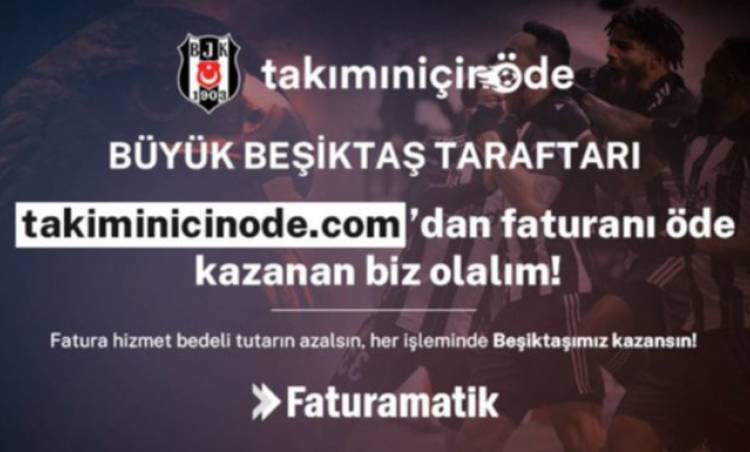 Bu yılın futbolda kadın, süper lig ve kupa şampiyonu Beşiktaş JK, Türkiye’nin lider ödeme kuruluşu Faturamatik ile dünyada bir ilke daha imza attı. Kulübüne desteğini her fırsatta sürdüren taraftara yönelik işbirliğinde siyah beyaz renklere gönül verenler, kişisel faturalarını www.takiminicinode.com adresinden yaparak kulübüne katkı sağlayacak. Elektrik, su, doğalgaz, gsm, internet gibi ödemeleri kapsayan anlaşma çerçevesinde taraftar Beşiktaş JK’ya her fatura işleminde belli oranda destek olurken, işlemler sırasında piyasa koşullarına göre daha az hizmet bedeli ödeyerek de avantaj sağlayacak.