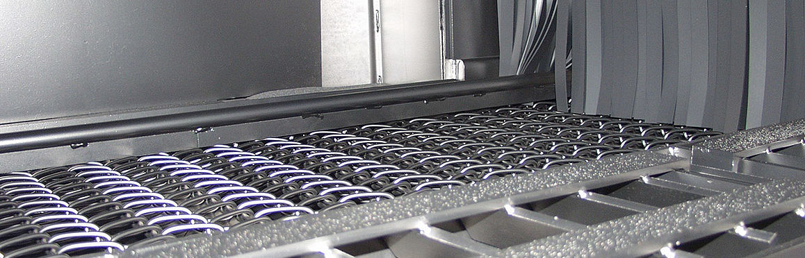 Çelik hasır bantlı makineler, yassı, geniş ve kompleks yapılı parçaların tüm yüzeylerinin kumlanabilmesi için idealdir.