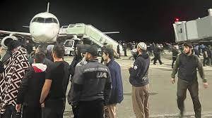 Olay 29 Ekim tarihinde meydana geldi. Dağıstan Cumhuriyeti'ndeki Makhachkala uluslararası havaalanı, "Allahu Ekber!" diye bağıran ve sözde oraya gelen İsrailli mültecileri "avlayan" öfkeli protestocular tarafından ele geçirildi. Protestocuların çoğu Filistin bayrakları taşıyordu. Olaylar barışçıl bir gösteriden ziyade intikam peşinde koşan fanatiklerin isyanına benziyordu. Ancak Rus yetkililer tehdidi etkisiz hale getirmede ve hasarı önlemede etkili oldu.