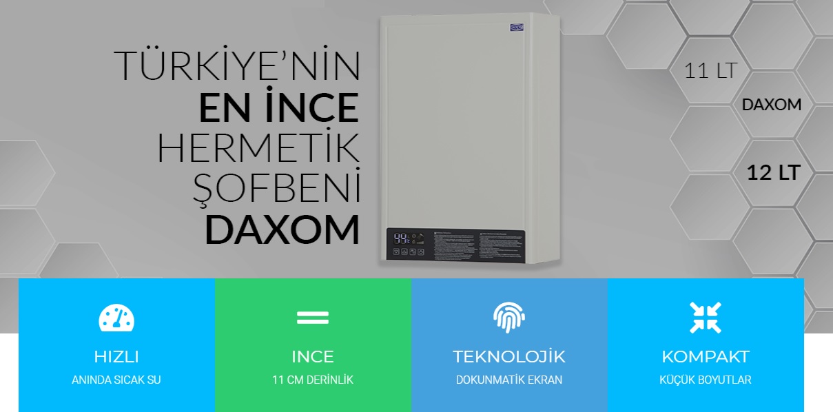 İstanbul’daki tesislerinde elektrikli kombi, yoğuşmalı duvar tipi kazan ve şofben üretimi gerçekleştiren Daxom, küçük metrekareli dar alanlara özel çözümler de geliştiriyor. Sadece 11 santimetre genişliğe sahip, Türkiye’nin ve Avrupa’nın en ince hermetik şofbeni Daxom Plus’ı kullanıcılarıyla buluşturan firma, şu anda ar-ge çalışmalarını yürüttüğü küçük ebatlı su ve ortam ısıtıcısı cihazını yakında pazara sunmaya hazırlanıyor. Daxom’un yeni ürünü, özellikle hem ulaşım amaçlı hem de yaşam alanı olarak kullanılan karavan, tekne, yat, panelvan gibi araçlarda 12 volt elektrikle sıcak su ve ortam ısısı sağlayacak.
