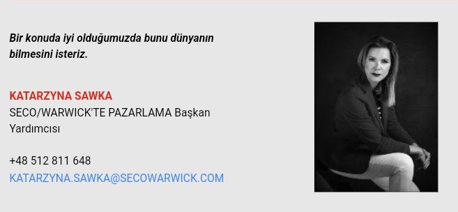 "Teknoloji geliştirmeye yapılan sürekli yatırımlar ve en büyük çelik üreticileriyle uzun yıllara dayanan işbirliği, SECO/WARWICK'in gerekli standartları karşılayarak ve modern çözümler sunarak güvenilir tedarikçiler arasındaki lider konumunu korumasına olanak tanıyor."
