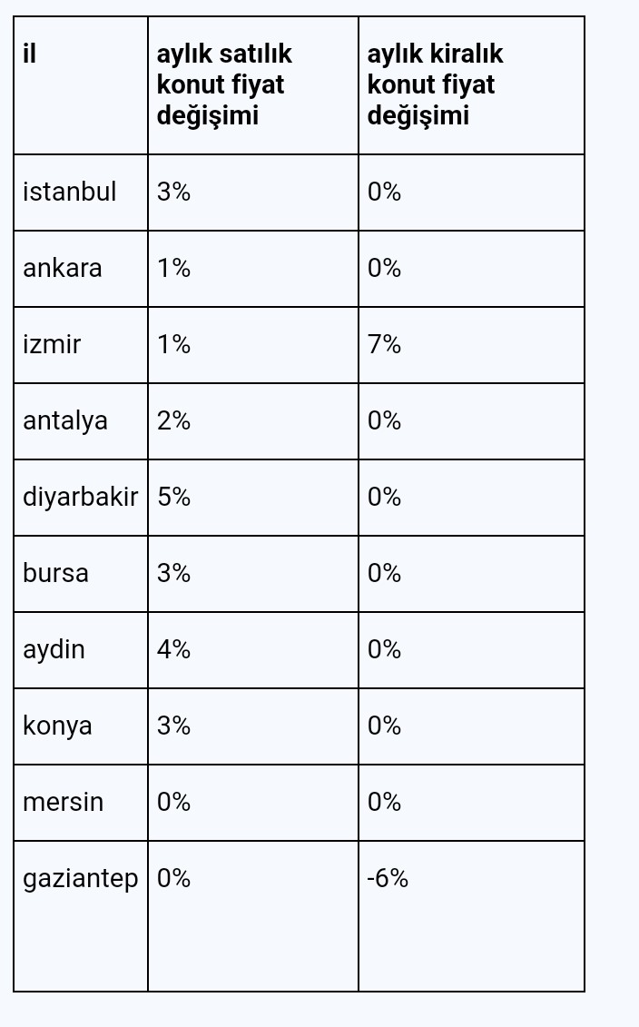 Mart ayında En Çok Konut Aranan İller & Türkiye İçindeki Arama Payı & Fiyat Değişimleri