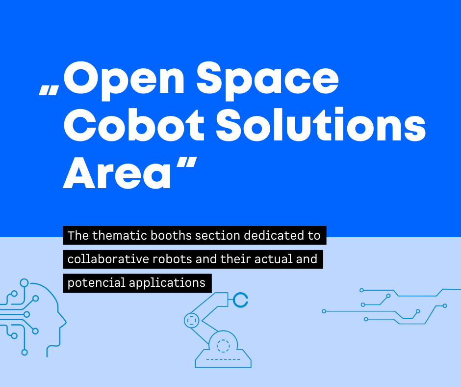 Açık Alan Cobot Çözümleri Alanı bu nedenle tamamen insanlar ve endüstriyel robotlar arasındaki etkileşimlere ve bunların gerçek ve potansiyel uygulamalarına adanmıştır. Üreticiler, kobotlara dayalı otomasyon çözümlerini ve yenilikçi kullanımlarını uluslar arası ticaret kamuoyuna sunacaklar: “Tutucular, görüntü işleme, ölçüm sistemleri, yazılımlar, endüstriyel elektronikler, besleme sistemleri ve çok daha fazlası yakından deneyimlenebilir.”