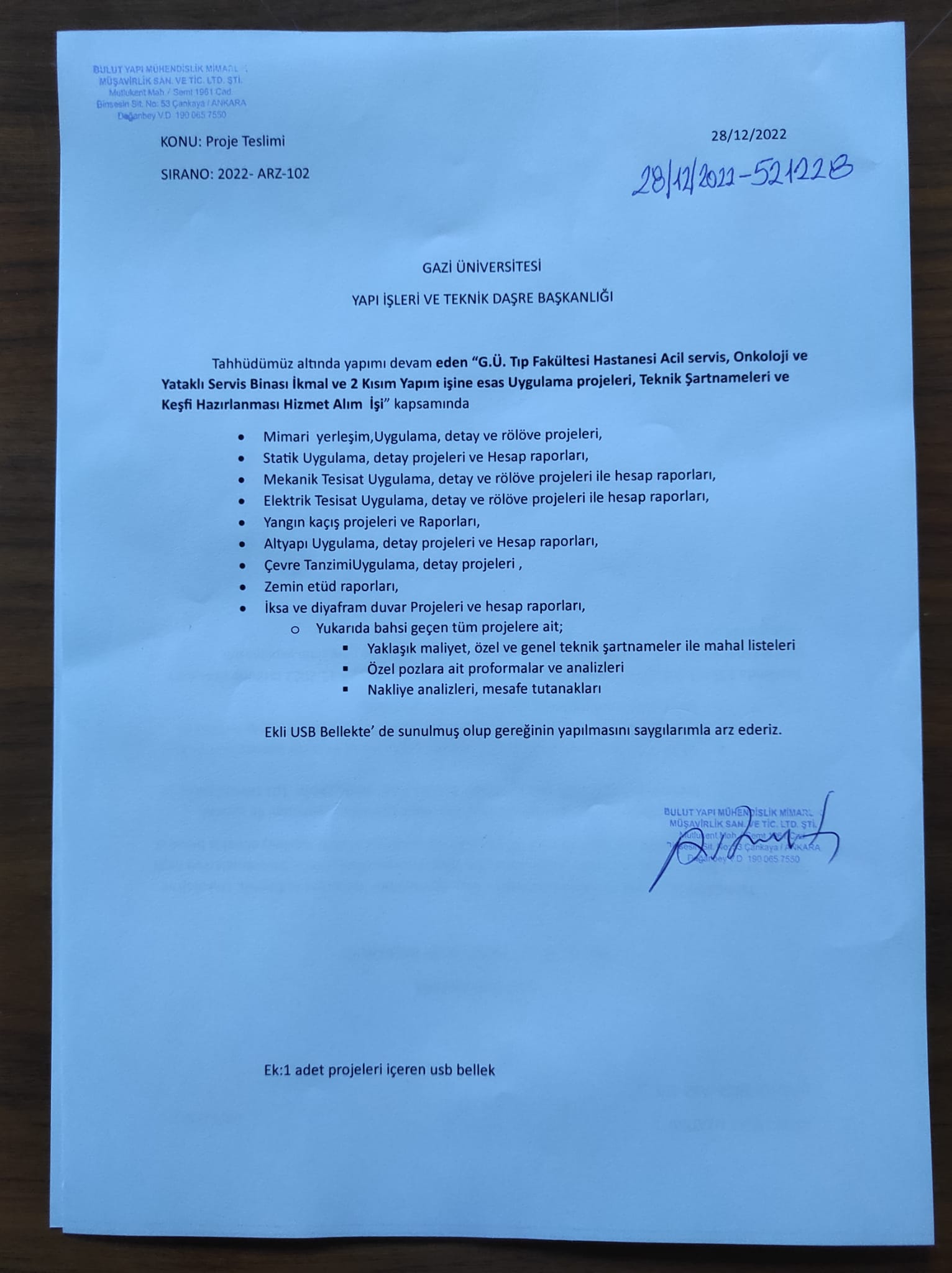 Yapım işlerinde arsa temin edilmeden, mülkiyet, kamulaştırma ve gerekli hallerde imar işlemleri tamamlanmadan ve uygulama projeleri yapılmadan ihaleye çıkılamaz. İhale konusu yapım işinin özgün nitelikte ve karmaşık olması nedeniyle teknik ve malî özelliklerinin gerekli olan netlikte belirlenemediği durumlarda ön veya kesin proje üzerinden ihaleye çıkılabilir. Uygulama projesi bulunan yapım işlerinde anahtar teslimi götürü bedel teklif alınmak suretiyle ihale yapılması zorunludur. Ancak, doğal afetler nedeniyle uygulama projesi yapılması için yeterli süre bulunmayan yapım işlerinde ön veya kesin proje üzerinden ve zemin etütleri gerekmesi veya uygulamada imar ve güzergâh değişikliklerinin olması nedenleriyle ihaleden önce uygulama projesi yapılamayan, bina işleri hariç, yapım işlerinde ise kesin proje üzerinden ihaleye çıkılabilir. Bu işlerin uygulama projesi yapılabilen kısımlar için anahtar teslimi götürü bedel, uygulama projesi yapılamayan kısımlarda ise her bir kalem iş için birim fiyat teklif almak suretiyle ihale yapılabilir. Arsa temini, mülkiyet ve kamulaştırma işlemlerinin tamamlanması şartı, baraj ve büyük sulama, içme suyu isale hattı, enerji nakil hattı, trafo, trafo merkezleri, şalt tesisleri, kaptajlar, su depoları, karayolu, liman ve havaalanı, demiryolu, petrol ve doğalgaz boru hattı projelerinde aranmaz. Bu ihalede ise; uygulama projelerinin olduğu ise iki kere net bir şekilde ortadadır. Birinci olarak 2014 yılında ihale edilen işin tüm projeleri vardır. Tüm projeler olmasaydı ilk ihale anahtar teslim usule göre yapılamazdı. İkincisi ve daha vahim olanı; İdare tarafından söz konusu iş için “Gazi Üniversitesi Tıp Fakültesi Hastanesi Acil Servis, Onkoloji ve Yataklı Servis Binası İkmal ve II Kısım Yapım İşine Esas Uygulama Projeleri, Teknik Şartnameleri ve Keşif Hazırlanması Hizmet Alımı İşi” kapsamında 25.04.2022 tarihinde uygulama projeleri için ihale yapılmış olup; 495.000,00 ₺ bedel ile İlgili MÜHENDİSLİK ve MİMARLIK ŞİRKETİ’ne işi ihale etmiştir. Proje firması ise; söz konusu iş kapsamında uygulama projeleri hazırlanmış ve 28.12.2022 tarihinde tüm uygulama projelerini Gazi Üniversitesi’ne teslim etmiştir.