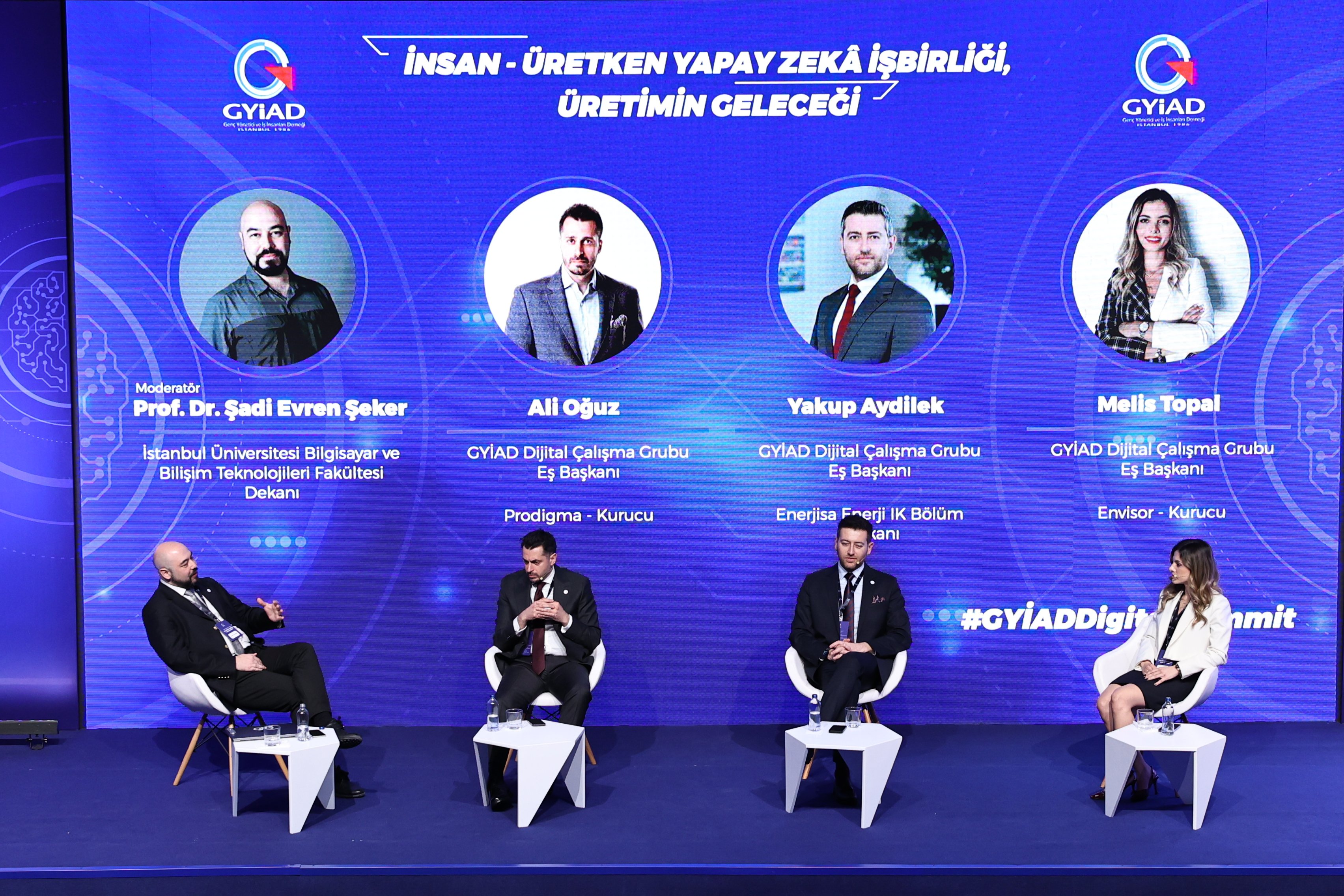 Açılışın ardından etkinlik, Enerjisa Enerji CIO'su Mehmet Fırat'ın “Geçmişten Geleceğe Üretken Dönüşüm” başlıklı konuşması ile devam etti. SAP Türkiye Genel Müdürü Uğur Candan'ın “Yapay Zekâ Gelişimi ve ERP Çözümleri”ni paylaştığı konuşmasının ardından zirvenin ilk panelinde “Üretken Yapay Zekâ İş Birliği, Üretimin Geleceği” konuları ele alındı. İstanbul Üniversitesi Bilgisayar ve Bilişim Teknolojileri Fakültesi Dekanı Prof. Dr. Şadi Evren Şeker'in moderatörlüğünde gerçekleşen panelin konuşmacıları GYİAD Dijital Çalışma Grubu Eş Başkanları Ali Oğuz, Yakup Aydilek ve Melis Topal oldu. Konuşmacılar panelde şu görüşleri paylaştı.