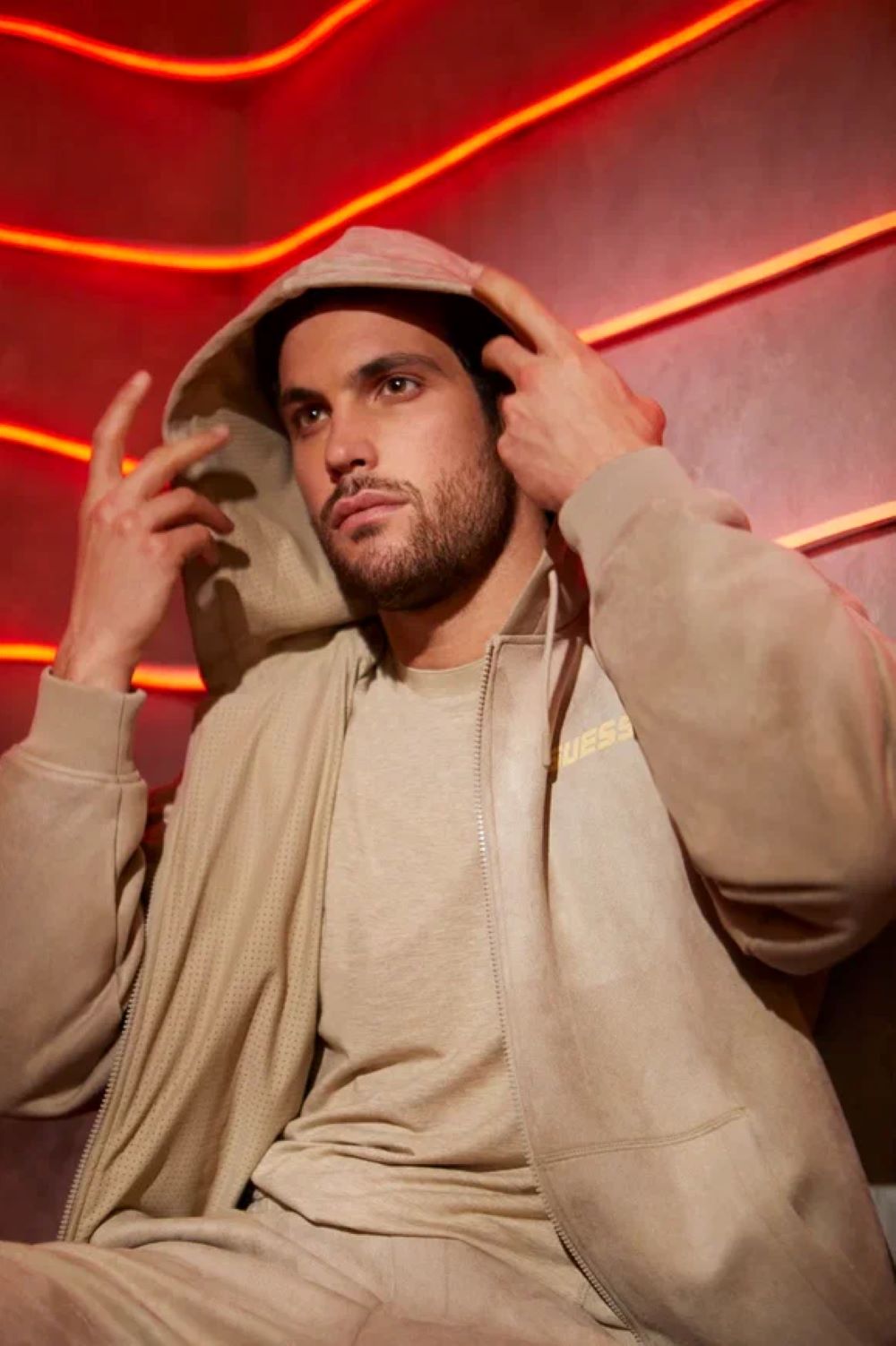 Kapitone ve krinkle kumaşlardan oluşan, süet ve sprey efektli bitişlere sahip bu genç ve çağdaş koleksiyon, yenilikçi bir tarz sunuyor. Sprey efekti tasarımıyla tişörtler, kapüşonlular, sweatshirt'ler, eşofman altlarının paçaları, omuzları, bacakları, yenilikçi grafikler ve sprey boya vurgularıyla sokak tarzını yansıtıyor. Sezondaki kargo tarzı cepler, dikkat çekici renk kombinasyonları, özel GUESS logoları ve grafikleri ile atletik giyime çağdaş bir dokunuş katıyor. GUESS Activewear 2024 Sonbahar & Kış koleksiyonunda, şık kapüşonlular, bomber ceketler, kargo tarzı eşofmanlar ve eskitme tişörtler, ton sür ton ve kontrast marka logolarıyla sokak tarzına tasarım şıklığı katıyor. Klasik çift taraflı tişörtler, rahat kapüşonlular, şık eşofman altları ve bol kalıp şişme ceketler dikkat çekiyor. Koleksiyonun bir diğer serisinde yer alan içten gömlekli shell ceketler ve kapitone trençkotlar, şık ve atletik kıyafetlerle farklı bir stil oluşturuyor. Suede Scuba ve Crinkle Nylon koşu takımları ise, keskin dokuları, çağdaş stilleriyle spor giyimin temel parçalarına yeni bir soluk getiriyor.