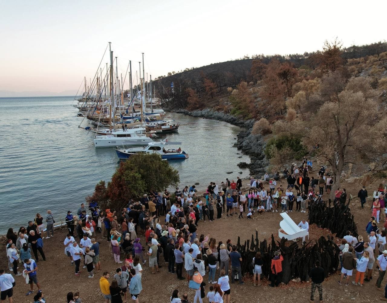 Umut dolu dost rüzgarlarla Çökertme’ye varan yelkenler #HepBeraber dedi… Yangında büyük mücadeleler sergileyen isimsiz kahramanlara teşekkür edildikten sonra #HepBeraber olmanın ve dayanışma ruhunun önemine vurgu yapıldı. Yangın alanının ortasına yerleştirilen bembeyaz bir piyanoda unutulmaz bir dinleti sunan Kerem Görsev, müziğin iyileştirici gücünü bir kez daha hatırlatarak iyilik ve güzellikle umutların yeniden yeşereceğine duyulan inancı tazeledi.