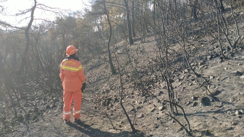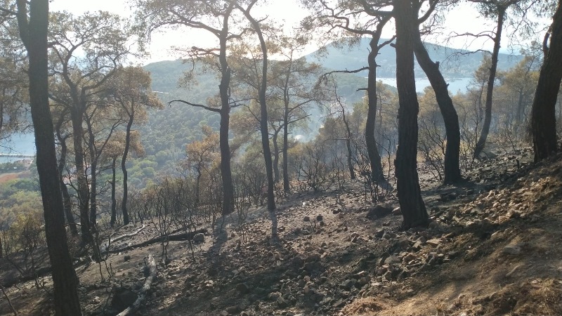Yangın çok hızla ilerledi, yamaçları adeta yalayıp geçti. Bu nedenle birçok ağaç aslında tamamen yanmış değil, yeşil dalları duruyor. Bu ağaçların yaşamaya devam edeceğini biliyoruz ve konunun uzmanı bilim insanları gibi biz de canlı ağaçların kesinlikle kesilmemelerini istiyoruz.
