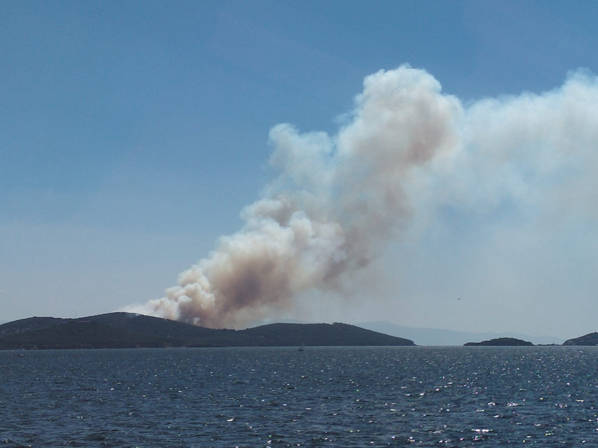 Ağaçların tepelerinin de yandığı orman yangınları (tepe yangını) çok hızlı ilerler ve söndürülmesi için havadan müdahale gerekir. Ülkemizde bu yıl çıkan ve günlerce söndürülemeyen yangınlardan da bildiğimiz gibi, Orman Genel Müdürlüğü'nün havadan müdahale kapasitesi yeterli değil. OGM elindeki üç adet yangın söndürme uçağından ilkinin adaya gelmesi saat 14.50 civarında oldu. Yangın toplam beş helikopter ve iki uçakla, 7 hektar alan yandıktan sonra söndürülebildi.