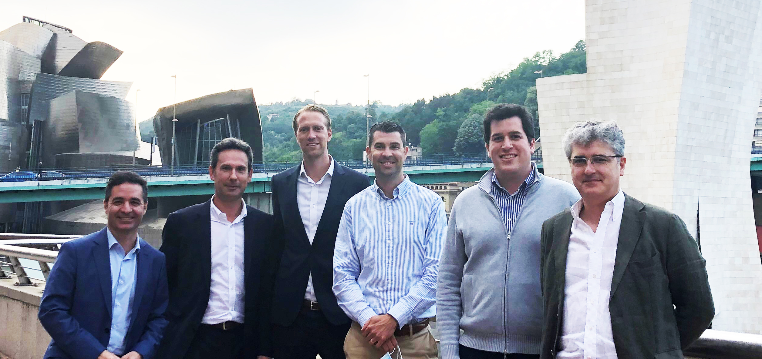 Bilbao'daki HMS ve Owasys temsilcileri. Soldan sağa: Javier Gurtubay Francia, CEO, Owasys. Damaso Orbe Larrondo, Satış Müdürü, Owasys. Oscar Cedergren M&A yöneticisi, HMS. Joakim Nideborn, CFO, HMS. Miguel López López, Ar-Ge Müdürü, Owasys. Juan Carlos Cabado Ramos, Tedarik Müdürü, Owasys.
