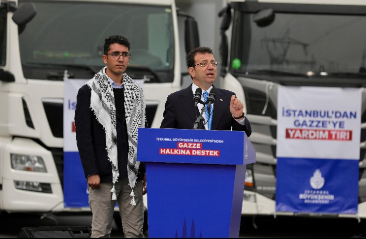 İBB Başkanı Ekrem İmamoğlu, İBB’nin Gazze’ye ulaştırılmak üzere yola çıkardığı, içleri yardım malzemesi dolu 5 TIR’ı, annesi, ablası ve kardeşiyle Türkiye’de yaşayan, babası savaş nedeniyle Gazze’de mahsur kalmış Filistinli öğrenci Yusuf Bereket ile birlikte uğurladı. İsrail’in, Güney Afrika’nın şikayetiyle, Uluslararası Adalet Divanı’nda soykırım suçlamasıyla yargılanacağını aktaran İmamoğlu, iktidarım bu konudaki politikasını eleştirdi. “Aylardır Filistin'de mazlumlar inim inim inlerken ticareti durduramayanlar, gemilerini limanlara çekemeyenler, kalkıp utanmadan, sıkılmadan Gazze edebiyatı yaparak, İstanbul seçimine malzeme yapmaya kalkıyorlar” diyen İmamoğlu, “Biraz samimi olsaydınız, Güney Afrika hükümetinin gösterdiği dirayeti gösterirdiniz. Gazze'ye el uzatmak için, İBB'yi kazanmayı beklemezsiniz. Böyle bir haddiniz de yok. İşinizi yapın, görevinizi yapın. Türkiye Cumhuriyeti gibi, dev bir ülkeyi yönetiyorsunuz. Bölgenin devi, bölgenin lideri, bölgeye abilik, bölgeye barış, bölgeye huzur getirmesi gereken bir ülkeden bahsediyoruz. Bir dakika bile bekleyemezsiniz, beklemeyin. Hemen el uzatın Gazze'ye. Biz de sizleri takdir edelim. ‘Hükümetimiz, devletimiz gereğini yapmıştır’ diyelim. Onun için diyorum burada, işe önce ticareti durdurarak başlayın” ifadelerini kullandı.