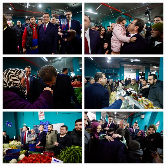 İstanbul Büyükşehir Belediye (İBB) Başkanı Ekrem İmamoğlu, CHP Bağcılar Belediye Başkan adayı Cem Kılıç ile Hürriyet Mahallesi’ndeki kapalı semt pazarını ziyaret etti. Pazarda esnaf ve vatandaşlarla bir araya gelen İmamoğlu, yurttaşların yoğun ilgisiyle karşılandı. Esnaftan ve vatandaşlardan gelen sorun, öneri, eleştiri ve talepleri alan İmamoğlu ile yurttaşlar arasında artık klasikleşen ilginç diyaloglar gerçekleşti. İmamoğlu, pazar girişinde karşılaştığı bir vatandaşın, “Size, şunun için teşekkür edeceğim sadece. Biz, 50 yaşındayız. Biz Demirel’i gördük, Özal’ı gördük, Erbakan’ı gördük, Ecevit’i gördük. Ama inanın şu üslubunuz, Türkiye Cumhuriyeti’nde özlediğimiz siyaset. İnanın üslubunuz yeter” sözlerine, “Eyvallah. Sizi mahcup etmeyeceğiz” yanıtını verdi.