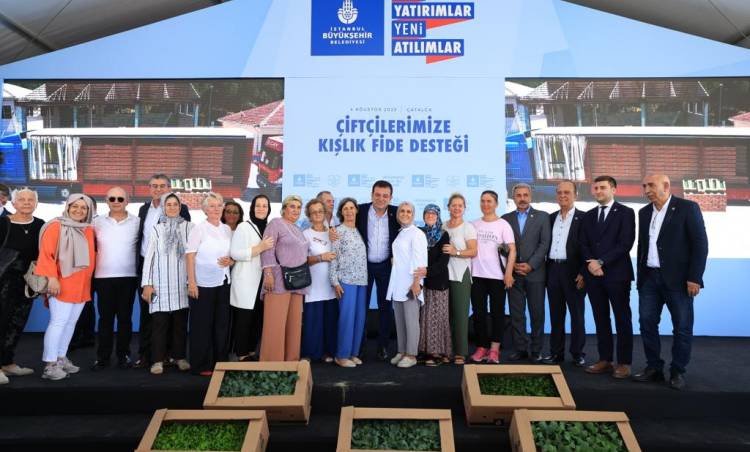 “Toprakta yeşeren üretim, bir toplumun aslında berekete dair en büyük moralidir” diyen İmamoğlu, “Ben, köy çocuğuyum. Köyde yetiştiren insanların topraktan gelen bereketi gördüklerinde yüzlerinin nasıl bir moralle dünyaya baktıklarını iyi bilirim. Annelerin, babaların, gençlerin oradan fışkıran bereketle hayata nasıl temel bir tutkuyla tutunduklarını iyi bilirim. O bakımdan işte biz, tam da böyle bir bakışla, ‘Kentin bütçesini nasıl bereketli bir şekilde kullanıyorsak, tarım alanlarımızın da İstanbul'da en bereketli şekliyle verimli olmasını istiyoruz’ diyerek yola çıktık. Bu hedefle, birçok hizmeti ilk kez İstanbul'la buluşturduk. İlk defa 2020 yılında İstanbullu çiftçilerin girdi maliyetlerini azaltmak, tarımsal üretimden uzaklaşan köylerde yaşayan vatandaşlarımızı tekrar tarıma teşvik etmek ve böylelikle tarımsal alanların betonlaşmasını önlemek amacıyla yazlık sebze üreten çiftçilerimize fide desteği verdik” şeklinde konuştu.