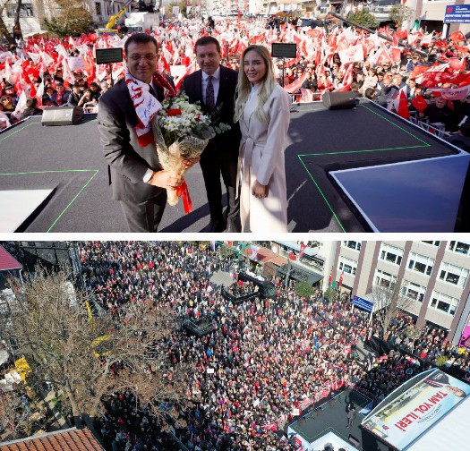 İstanbul Büyükşehir Belediye (İBB) Başkanı Ekrem İmamoğlu, CHP Silivri Belediye Başkan adayı Bora Balcıoğlu ile birlikte ilçe turu yaptı. Vatandaşlar, İmamoğlu ve Balcıoğlu’na yol boyunca sevgi gösterilerinde bulundu. İmamoğlu, ilçe turunun ardından, Silivri Atatürk Meydanı’nda düzenlenen halk buluşmasında coşkulu bir kalabalığa konuştu. Yaklaşık 1 hafta sonra sandığa gidileceğini hatırlatan İmamoğlu, “Sandıktan çıkacak sonuç, hepimizin tabii ki başının üstüne. Biz, milletçe seçim sonuçlarını saygıyla karşılamayı biliriz. Öyle değil mi? sonuç ne olursa olsun, vatandaşlar olarak, birbirimize saygı gösteririz; öyle değil mi? Ama bu ülkede sonuçları beğenmediği zaman, seçimleri yok sayan bir anlayış var” dedi.