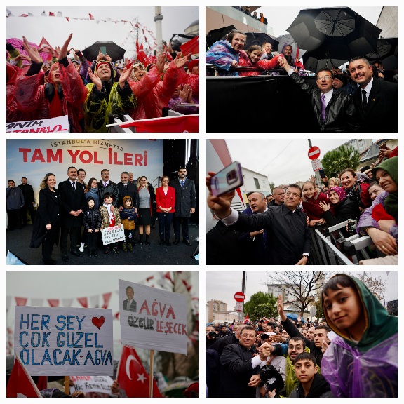 İstanbul Büyükşehir Belediye (İBB) Başkanı Ekrem İmamoğlu, Şile Kent Meydanı’nda sağanak altında halk buluşması gerçekleştirdi. Sağanağa aldırış etmeyen coşkulu kalabalık, İmamoğlu ve CHP Şile Belediye Başkan adayı Özgür Kabadayı’ya sevgi gösterilerinde bulundu. CHP Parti Meclisi üyeleri Baki Aydöner, Nazan Güneysu ve CHP Milletvekili Ali Gökçek de halk buluşmasında İmamoğlu’na eşlik etti. Sağanaktan korunmak için yağmurluk giyerek konuşan İmamoğlu, vatandaşlara, “Siz ıslanırsanız ben ıslanırım, siz ıslanmazsanız ben ıslanmam. Varsayalım ıslanmıyoruz. Varsayalım hava çok güneşli bugün. Ancak barajlar su dolacak, topraklardan bereket fışkıracak” sözleriyle seslendi.
