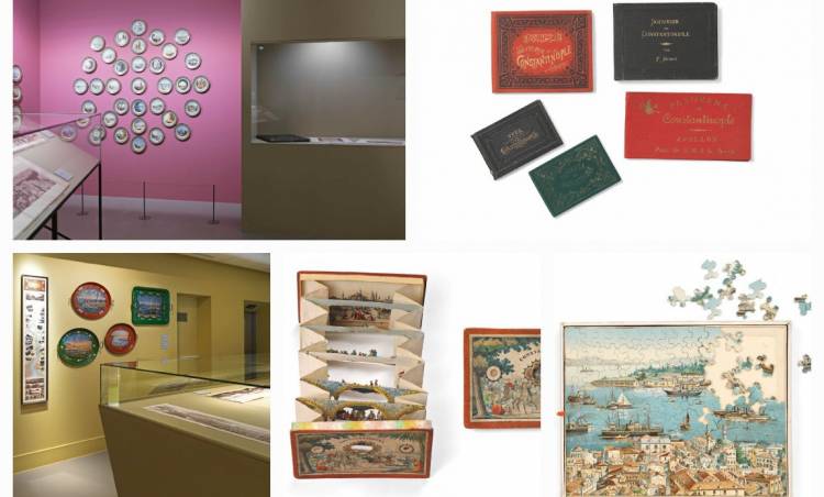 Topkapı ve Sarayburnu panoramik görünümlü yaklaşık 200 parçalık anonim yapboz, 19. yüzyıl sonu-20. yüzyıl başına tarihlenen bir dokuma, 19. yüzyıl sonu üretilen çeşitli boyutlardaki İstanbul tasvirli pulat tepsiler de sergide görülebiliyor.