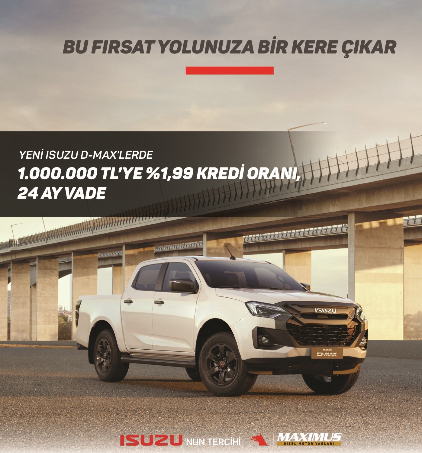 Sadece Türkiye pazarı dahil, birçok ülkede pick-up modellerde, en popüler araçlardan biri olan D-Max modellerinde geçerli olan ve 30.11.2024 tarihine kadar sürecek olan kampanya; araç sahibi olmak isteyenlere 1 milyon TL’ye, 24 ay yüzde 1.99 faiz fırsatı sunuyor.