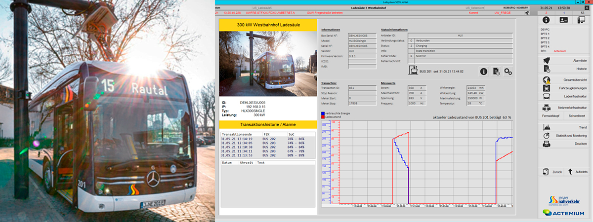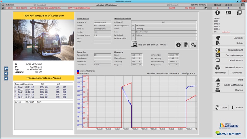 Jena'nın toplu taşıma sistemi, e-otobüs filosu için şarj sütunlarını nasıl izliyor ve kullanılabilirliği artırmak ve bakım faaliyetlerini optimize etmek için gelişmiş tanılama özelliklerini nasıl kullanıyor?