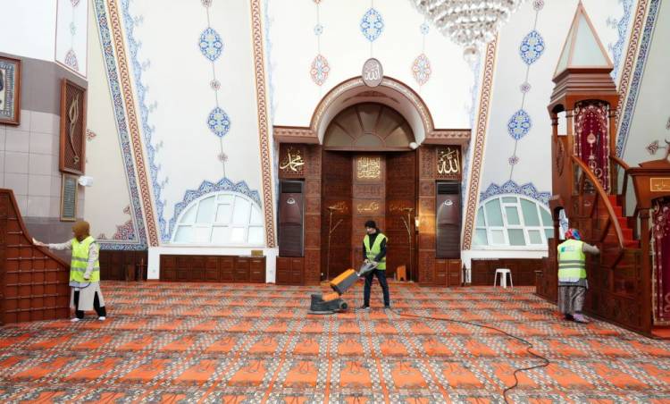 Kadıköy’deki ibadethaneleri düzenli olarak özel temizlik ekipleriyle temizletip bakımını yapan Kadıköy Belediyesi Ramazan ayı nedeniyle temizlik çalışmalarını hızlandırdı. Kadıköy Belediyesi Destek Hizmetleri Müdürlüğü’nün verdiği hizmet kapsamında temizlik görevlileri ibadethanelerde halılar ve zemini vakumlu süpürgeyle temizledikten sonra halı yıkama makinesi ile yıkıyor ve kurutuyor. Ayrıca şadırvan, ayakkabılık ve tuvaletlerin de temizlenerek dezenfekte edildiği ibadethanelerde ahşap, mozaik, seramik gibi yerler özel temizlik malzemesi kullanılarak temizleniyor.