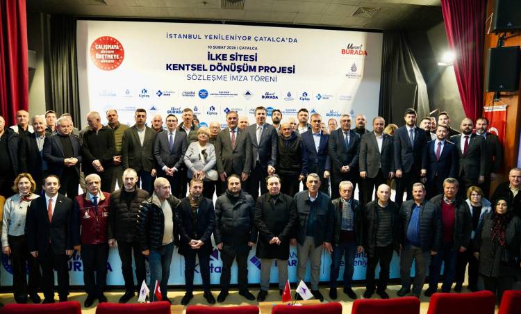 Çatalca Ferhatpaşa Mahallesi İstasyon Caddesi üzerindeki 8 blok, 71 konuttan oluşan 1989 üretimi İlke Sitesi, 2020 yılında riskli yapı ilan edildi. 94 hak sahibinin bulunduğu site, bir müteahhit ile anlaşılarak, aynı yıl içinde yıkıldı. Yıkımın ardından başlayan karmaşık süreç, temellerin atılmasını geciktirdi. İstanbul Büyükşehir Belediyesi (İBB) iştirak şirketi KİPTAŞ ve Çatalca Belediyesi arasında 17 Ekim 2024’te imzalanan “İstanbul Yenileniyor Sistemi İş Birliği Protokolü”, hak sahiplerinin güvencesi haline geldi. Belirsizlerle geçen yaklaşık 5 yıllık sürecin ardından, hak sahipleri, 6 Ocak 2025 tarihinde İstanbul Yenileniyor sistemine başvurdu. Mimari projenin hak sahipleri tarafından kabul edilmesiyle, süreç hızlandı. Hak sahipleri ile yapılan bilgilendirme toplantılarının ardından sıra, sözleşmelerin imzalanmasına geldi. “Çatalca İlke Sitesi Kentsel Dönüşüm Sözleşme İmza Töreni”; İBB Başkanvekili Nuri Aslan, Çatalca Belediye Başkanı Erhan Güzel, KİPTAŞ Genel Müdürü Gürkan Kaya ve hak sahiplerinin katılımlarıyla, Nazım Özbay Kültür Merkezi’nde gerçekleştirildi. Törende; Aslan, Güzel ve Kaya birer konuşma yaptı.