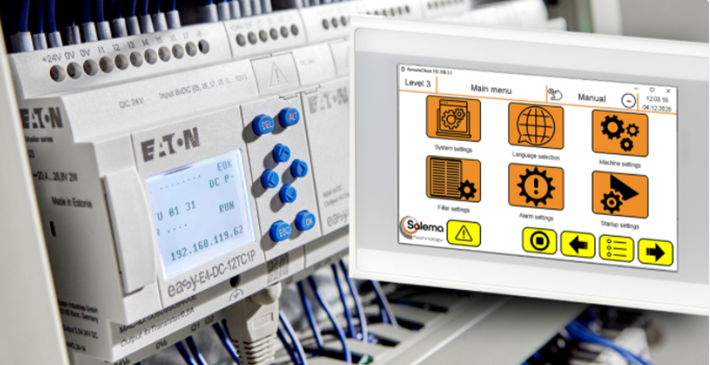 Bu nedenle Salema, mümkün olduğunca sezgisel olacak bir insan-makine arayüzü tasarlamayı amaçladı. Bu nedenle, Hollandalı şirket, easyE4 ve XV102 dokunmatik ekran kombinasyonunu tercih etti. Ek olarak, hava filtresinin gövdesi ayrıca Eaton'ın kırmızı, sarı ve yeşil renkli RMQ LED göstergeleriyle donatılmıştır. Bu görsel alarmlar ve sinyal cihazları 360° görüş sağlayarak kullanıcıların sorunları uzaktan algılamasına ve ardından XV102 dokunmatik panel üzerinden takip etmesine olanak tanır. Ek olarak, cihazlarda akustik alarmlar mevcuttur. Tüm alarmlar EasyE4 kontrol rölesi tarafından kontrol edilir, böylece hatanın doğasına bağlı olarak, farklı tipteki sesli ve görsel alarmlar programlanabilir. Salema, easyE4 ve XV102'nin programlamasını üstlenen ve uygulama aşamasında yerinde destek sağlayan, Eaton yalın çözüm ortağı PICA ile iş birliği yaparak projenin tamamlanmasını hızlandırdı.