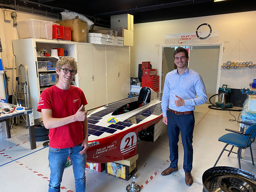 Left: Structural Designer, Stijn Louws, (Solar Team Twente) ; right: Andries Verstraeten (Sales Engineer Leybold Netherlands)