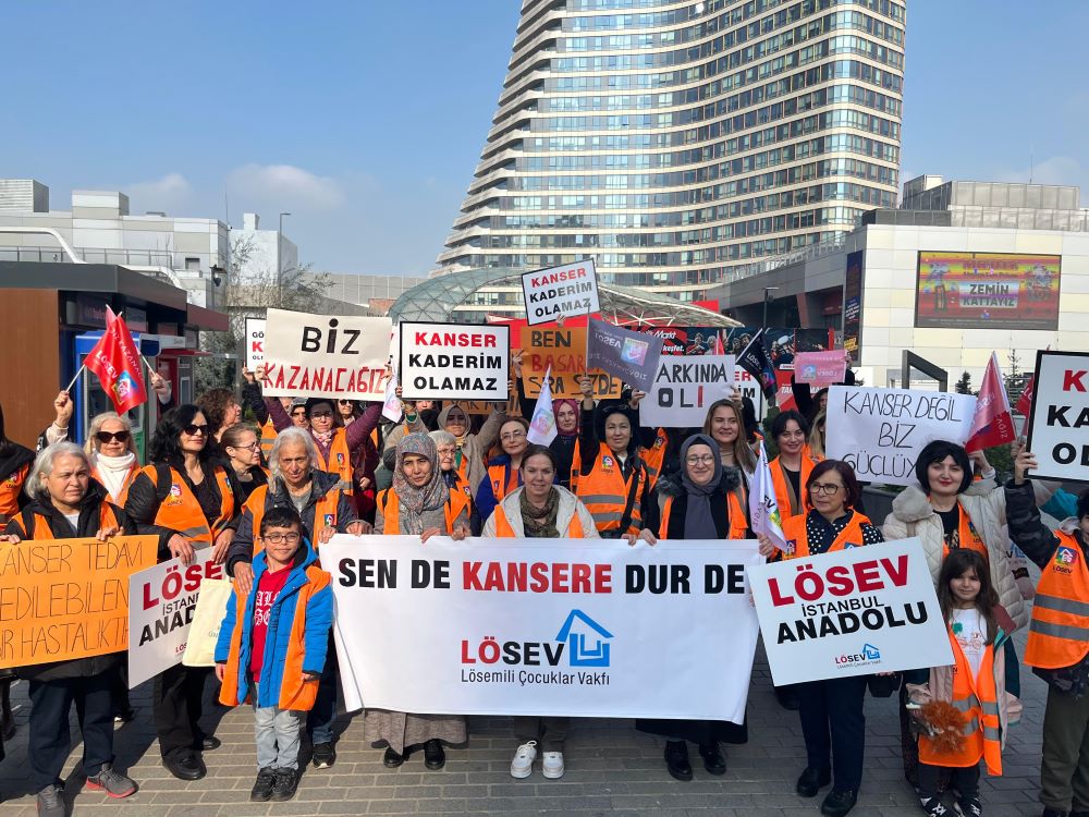 Lösemi ve kanser ile mücadele eden çocuklar ve yetişkin hastalar için çalışan LÖSEV, toplumda farkındalık yaratmayı ve kanserle mücadelede destek sağlamayı sürdürüyor. Kurum yetkilileri, Türkiye genelinde gönüllülerin ve kanser ile mücadele eden ailelerin de katılımı ile aktivist çalışmaya imza attı. Gönüllüler ve kanser ile mücadele edenler “Kanser Olmak İstemiyoruz, Kanser’e Dur De!, Kanser Değil Biz Güçlüyüz” yazılı pankartlar taşıyarak farkındalık yaratmayı hedefledi. LÖSEV yetkilileri çalışmada okunan bildiride: “Ülkemizde her yıl 200 bin yeni kanser vakası görüyoruz. Soruyoruz, nasıl ve neden kanser ediliyoruz! Sizler de bu toplumsal sorumluluk ve dayanışma hareketinde LÖSEV ailemize katılın. Kanserle ve bizi kanser eden şeylerle hep birlikte mücadele edelim. Her birimiz birer kanser savaşçısı olalım. Artık tek bir çocuğumuzu lösemi ve kanserden kaybetmeyelim. Sevgi, İyilik ve Umut dolu bu mücadeleyi biz kazanalım.” İfadeleri ile topluma çağrıda bulundu.