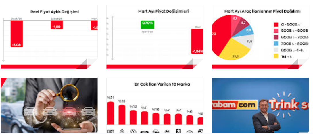 Mart ayında arabam.com ilanlarında en çok görülen markalar sırasıyla Fiat, Renault, Volkswagen, Ford, Opel, Hyundai, Peugeot, Toyota, BMW ve Citroen oldu. Model bazında bakıldığında ise mart ayında ilanlarda en çok bulunan otomobil modelleri sırasıyla Clio, Megane, Egea, Astra, Corolla, Focus, Passat, Polo, Civic ve Corsa oldu.