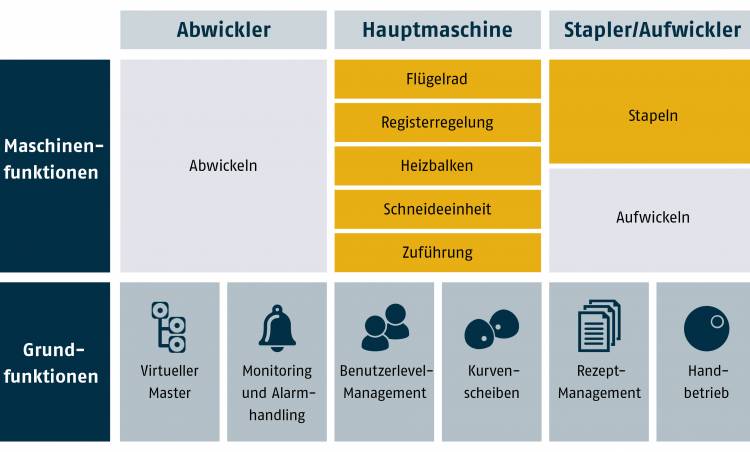 Fig. 1: The template contains the software for the typical process steps of web-guiding machines, e.g. for foil bag machines