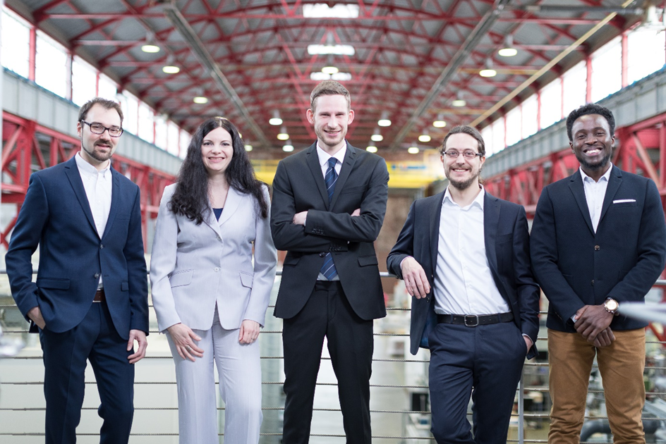 Christian Schwindling (m.) ve Qbing ekibi lojistik için tak-çalıştır çözümleri geliştiriyor