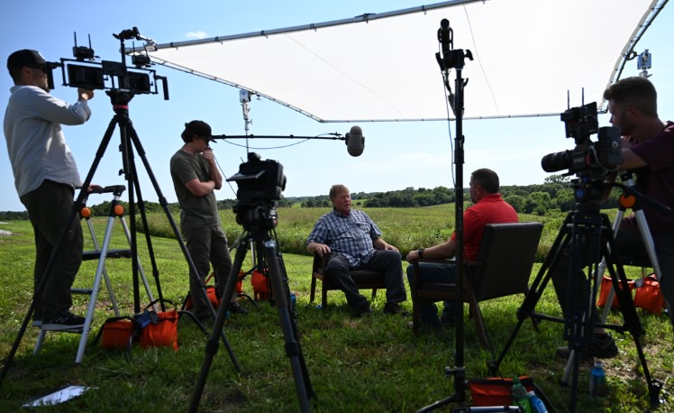 Bu görsel, Roeslein Renewables'ın 7 Nisan 2026'da saat 20:00'de (CST) RFD-TV'de yayınlanacak olan yeni orijinal video serisi "Prairie Prophets"in bir bölümünün çekim aşamasını göstermektedir. Seri, Amerika'nın tarım arazilerinde tarım, doğa koruma ve yenilenebilir enerjinin kesişim noktasını inceliyor. (Fotoğraf kredisi: Roeslein Renewables)