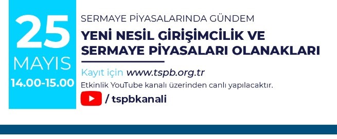 TSPB YouTube kanalından canlı olarak düzenlenecek ücretsiz webinara kayıt için: https://www.tspb.org.tr/tr/yeni-nesil-girisimcilik-piyasalari-ve-sermaye-olanaklari-webinari-kayit-formu/
