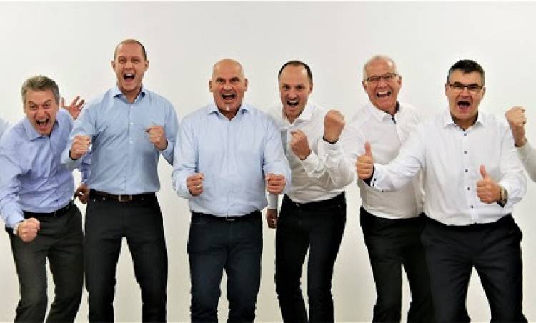 The face of Sumitomo (SHI) Demag: Henrik Langwald, Paolo Zirondoli, Anatol Sattel, Jürgen Schulze, Arnaud Nomblot, Gerd Liebig, Siegfried Köhler, Thorsten Thümen (left to right)