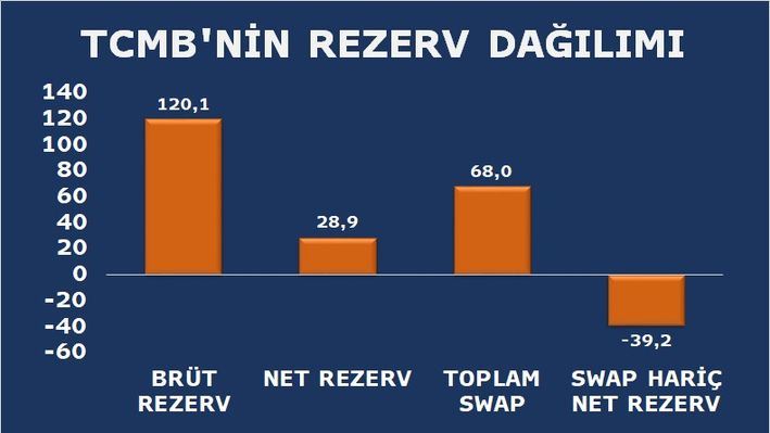 IMF'den gelecek olan 6.3 milyar dolar borçlanma ve Güney Kore ile gerçekleştirilen Swap anlaşmasından gelecek olan 2 milyar dolar diğer borçlanma ile merkez bankası net rezervi 128.4 milyar dolar olacak.