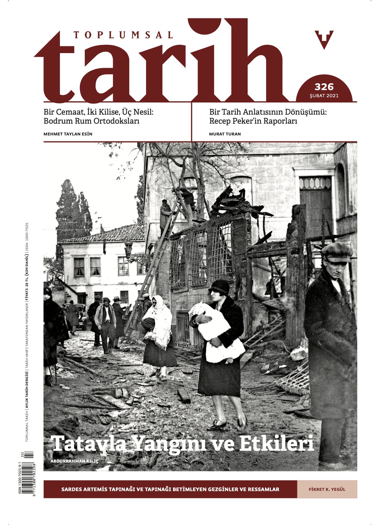 Erhan Keleşoğlu’nun yayın yönetmenliğinde hazırlanan bu sayının kapağında yer alan “Tatavla Yangını ve Etkileri” başlıklı yazı Abdurrahman Kılıç imzasını taşıyor. İstanbul’un hatırladığı en çetin kış günlerinden birinde, 1929 Kış’ında ahşap bir evde çıkan yangının nasıl kocaman bir semti kül ettiğini, Mübadeleden muaf tutulan İstanbullu Rumlara ve diğer gayrimüslim azınlıklara yüzyıllardır mesken olan “Tatavla”dan “Kurtuluş” semtine giden serencamın belki de en çarpıcı anlarını tarihsel, toplumsal ve siyasal arka planıyla birlikte resmediyor. Yazarın mühendislik bilgisiyle yaptığı tahliller toplumsal tarih yazımı için çok disiplinli bakışın ne denli elzem olduğunun da timsali.