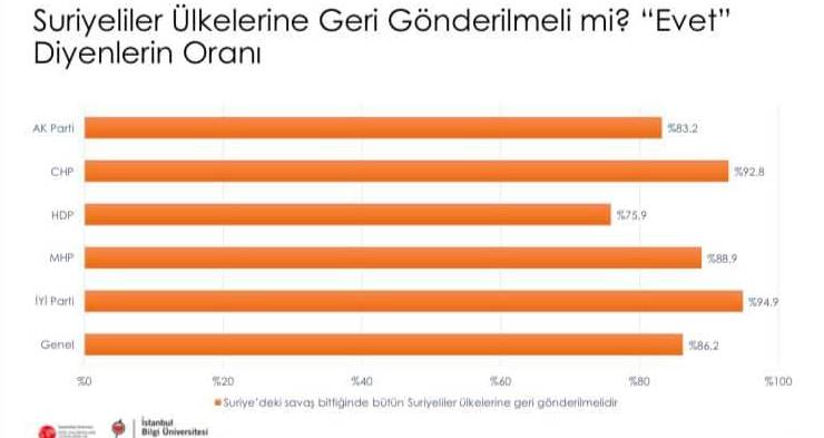 “Suriyeliler Ülkelerine Geri Gönderilmeli mi” sorusuna “Evet” diyenlerin oranı: