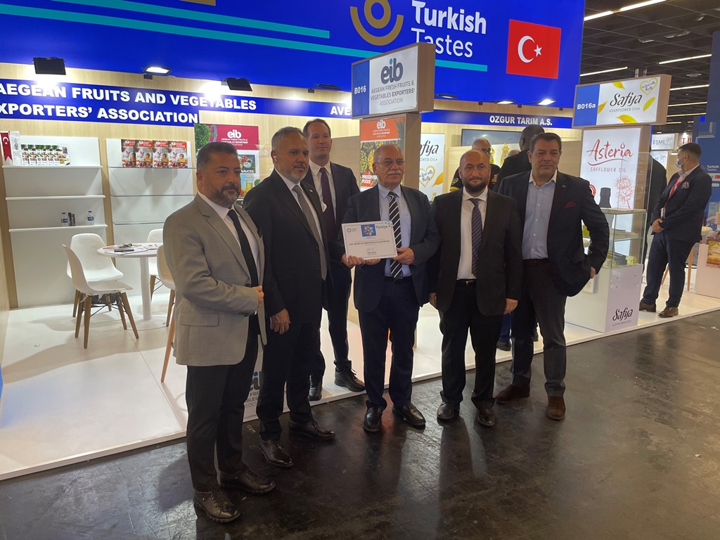 ANUGA Fuarı’nda Ege Yaş Meyve Sebze İhracatçıları Birliği’ni Yönetim Kurulu Başkan Yardımcısı Cengiz Balık, Yönetim Kurulu üyeleri; Martin Erdemir Sanford, Mehmet Ata Özdemir, Mehmet Kırıcı ve Türkmen Türkmenoğlu temsil etti. EYMSİB Yönetim Kurulu, ANUGA Fuarı katılımcıları arasında bulunan EYMSİB üyesi firmaları stantlarında ziyaret ederken, Türkiye’nin yaş meyve sebze ve meyve sebze mamulleri sektörlerini tanıtan yayın yapan “Hasat ve Ötesi” Dergisi katılımcılara ve ziyaretçilere dağıtıldı.
