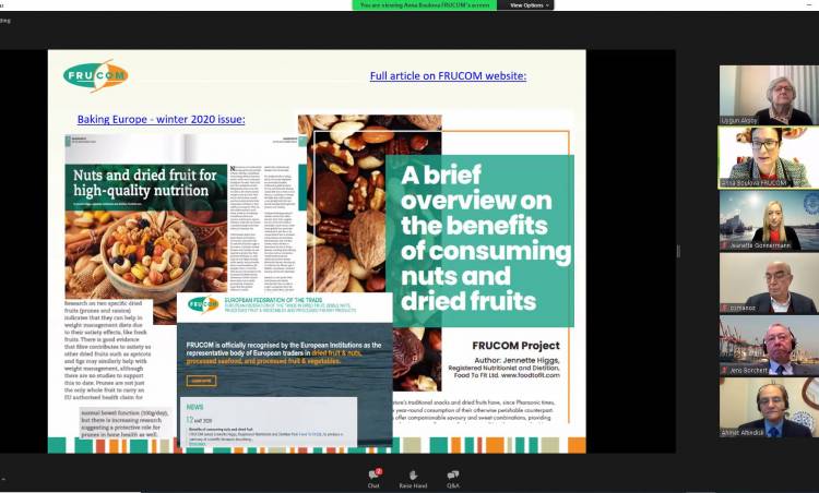 FRUCOM Genel Sekreteri Anna Boulova’nın moderatörlük yaptığı toplantıda Türk bilim insanları Prof. Dr. Uygun Aksoy ve Prof. Dr. Ahmet Altındişli, Hamburg Ticaret Borsası Yöneticisi Jeanette Gonnermann ve Waren-Verein der Hamburger Börse e.V. Kuru Meyve Yönetim Kurulu Başkanı Jens Borchert konuşmacı olarak katıldı.