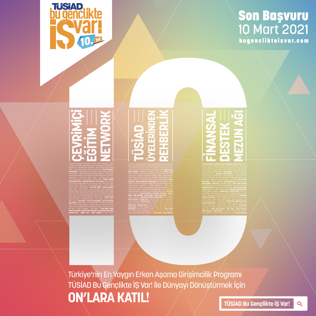 3 Mart 2011’de TÜSİAD’ın 40. yıl faaliyetleri kapsamında Ankara’da iki üniversitede bir girişimcilik yarışması olarak başlayan TÜSİAD Bu Gençlikte İŞ Var! Türkiye’nin 81 ili ve 200’ü aşkın üniversitesinden başvuru alan Türkiye’nin en kapsamlı erken aşama girişimcilik programı oldu. Girişimcilik ekosisteminden 250’i aşkın paydaşın ve Türkiye genelinde 350’i aşkın öğrenci topluluğunun yoğun desteği ile yürütülen program, 2019’da hayata geçirdiği Ege ayağı ile yerel ekosistemleri destekleyerek, Türkiye’de girişimciliğin çok merkezli gelişimine de katkı sağlıyor. Türkiye’nin yanı sıra yurtdışından da başvuru alan programa 2011 yılından beri 20 bini aşkın genç katıldı, 10 yılda 500’ü aşkın genç girişimci yetiştirildi.