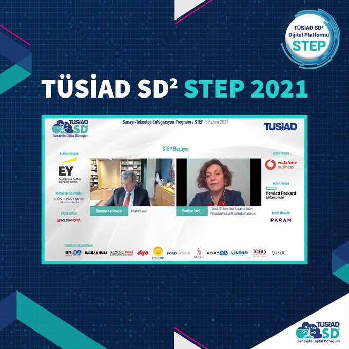 Dijital dönüşüm ekosisteminin önemli etkinliklerinden olan STEP'te, TÜSİAD SD2'nin destekçileri EY Türkiye (Platin Sponsor), Vodafone Business (Altın Sponsor), Hewlett Packard Enterprise (Altın Sponsor), PARAM (Bronz Sponsor), Gün+ Partners Avukatlık Bürosu (Hukuki Destek Paydaşı), Medinova (Çözüm Ortağı) oldu.