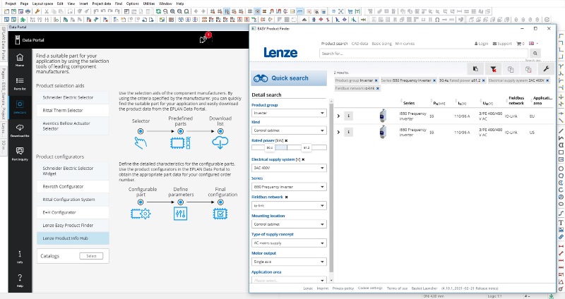 Yeni EPLAN Platformu piyasaya sürülmek üzere ve bu aynı zamanda EPLAN Data Portal'ın yalnızca EPLAN ePulse bulut ortamında kullanıma hazır olacağı ana da işaret ediyor. Platformun güncellenmiş kullanıcı ara yüzü, cihaz verilerini aramak ve bulmak için çok sayıda geliştirme sunuyor. İyileştirilmiş arama algoritmaları ve parametreleri, kullanıcıların indirilecek uygun bileşenleri hızlıca bulmasını çok daha kolay hale getiriyor. Artan sistem performansı ayrıca bileşenleri seçerken daha yüksek hız sağlıyor. Diğer bir yeni özellik ise Lenze ürün konfigüratörü entegrasyonu.