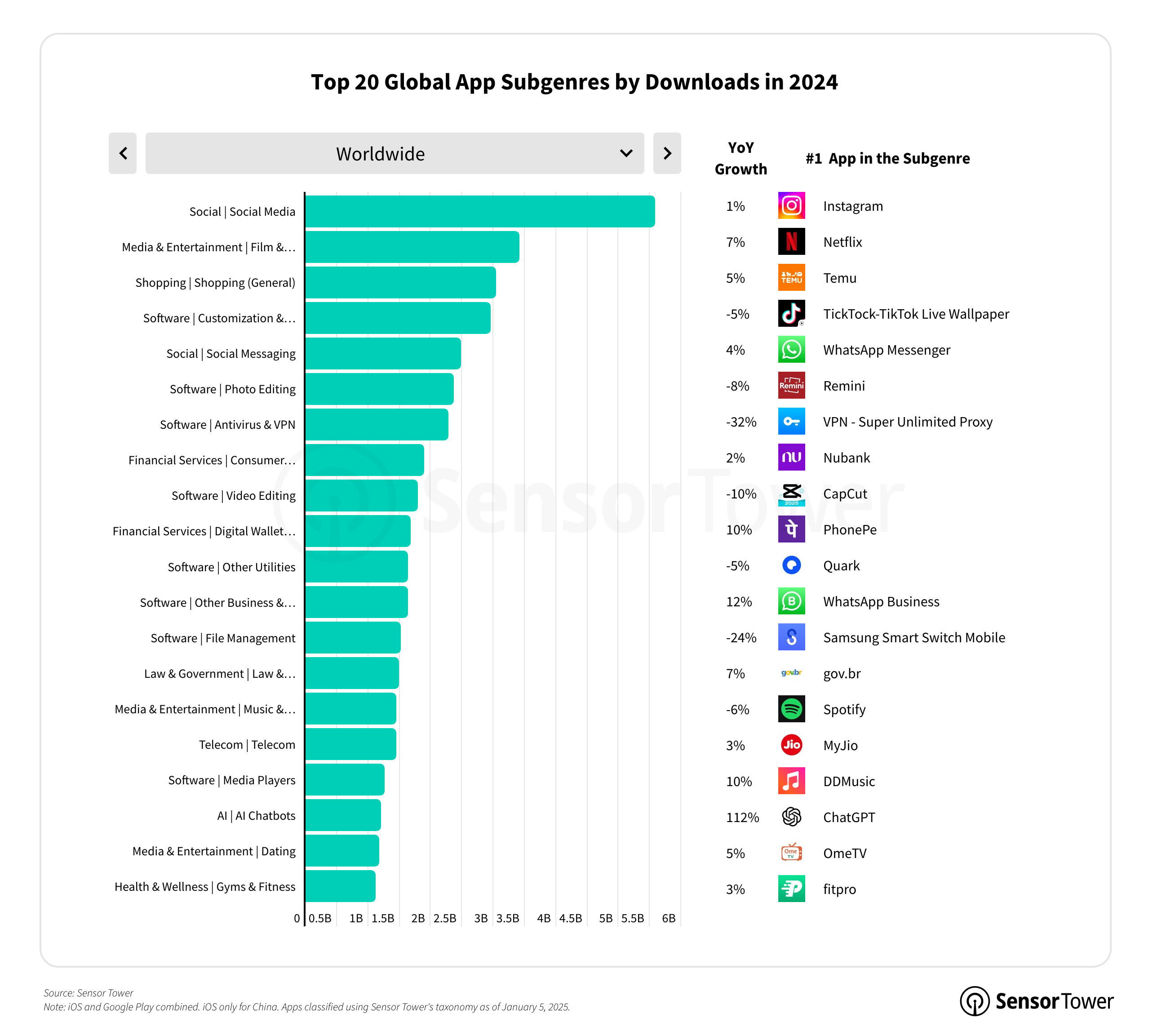 Sensor Tower'ın yayınladığı 2025 State of Mobile Raporu, bölgesel ve kategori düzeyindeki pazar eğilimlerini derinlemesine inceliyor. Sektör ve spesifik uygulama performansı hakkında daha fazla bilgiye ulaşmak için raporun tamamını buradan okuyabilirsiniz.