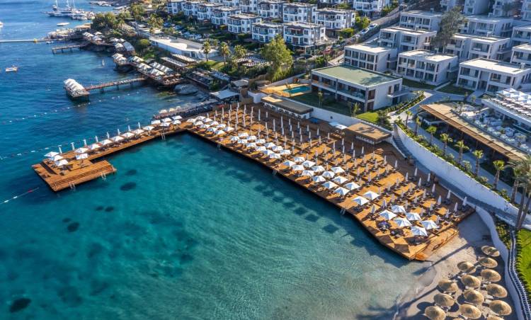Bodrum’un en uzun mavi bayraklı plajlarından birine sahip olan Mirada Exclusive Bodrum, sarı yaz zamanında da misafirlerine deniz keyfi için üç farklı alan sunuyor. 3 bin metrekarelik geniş iskelesine ek olarak konforlu, kompakt diğer iskeleleri ile misafirlerine denizin tadını çıkarma alternatifleri sunan Mirada Exclusive Bodrum, geniş kum plajıyla da unutulmaz bir sarı yaz tatil deneyimi vadediyor.